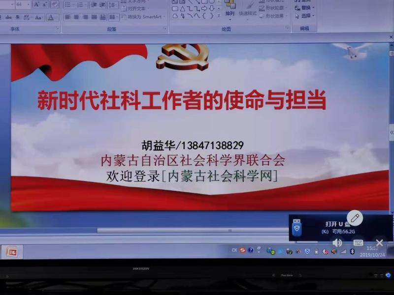 为深入学习贯彻习近平总书记关于“不忘初心、牢记使命”主题教育系列重要指示精神,将主题教育活动推向深入,真正做到学深悟透、融会贯通、真信笃行,2019年10月24日下午,565net必赢客户端党总支邀请内蒙古自治区社会科学界联合会巡视员胡益华同志在田楼432会议室作了题为“新时代社科工作者的使命与担当”的学术报告。报告会由党总支书记高林广主持,学院全体党员和教师聆听了讲座。