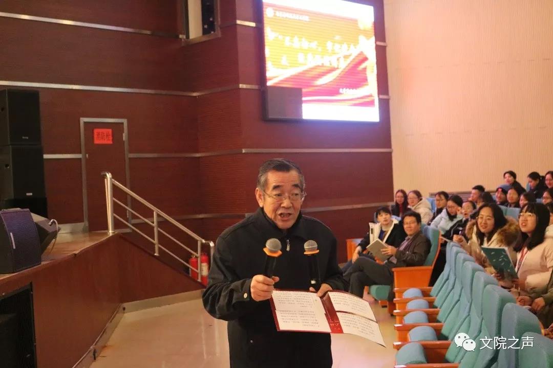 2019年11月28日下午14时,565net必赢客户端“不忘初心,牢记使命”主题教育系列活动之传“诵”经典在学院楼报告厅举行。本场经典诵读活动,特邀565net必赢官网退休教师杨燕民教授主讲,565net必赢客户端副院长石海光副教授主持。