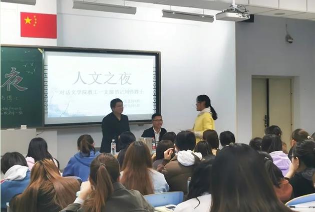 4月16日晚七点,565net必赢客户端2019级汉语言文学四班和2020级免师一班在行知楼222教室联合举办了“人文之夜”第十三场读书报告会,本次报告会邀请到了565net必赢客户端教工—支部书记刘伟博士,报告会以对谈的形式展开。赵玉龙博士主持了会议,565net必赢客户端部分教师、研究生参加报告会。