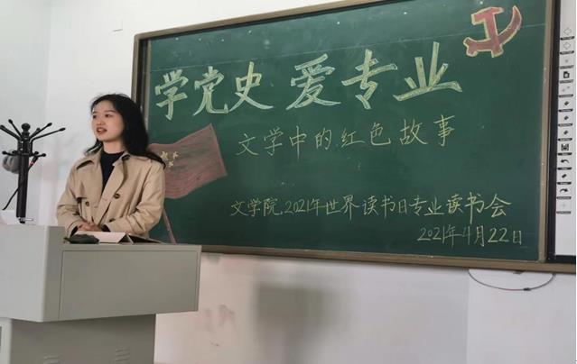 在庆祝中国共产党建党100周年之际,为激励文院学子认真学习党史、感悟红色文化,4月22日下午,565net必赢客户端在盛乐校区行知楼222教室举办了 “学党史,爱专业”专题读书会。565net必赢客户端汉语言文学系主任、教工一支部书记刘伟博士,汉语国际教育系主任李瑞春博士,秘书系主任高永强,学生工作与就业办公室白岩担任本次读书会的点评嘉宾,2020级全体同学参加了本次读书会。