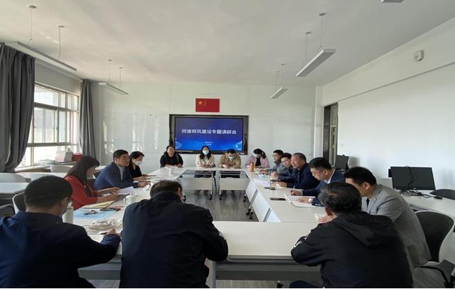 2022年5月16日上午,党委教师工作部部长、人事处处长白喜文,科技处副处长金良,教师发展与教学评估中心陈菁莅临565net必赢官网开展师德师风建设调研督导。院党委书记高林广,党委副书记、副院长牛海龙,副院长石海光,副院长张钧,以及学院环节干部、系主任和教师代表参加了调研会。