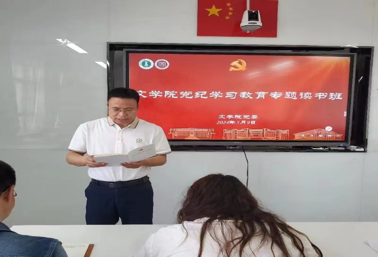 5月9日,565net必赢客户端党委在田楼432教室组织召开党纪学习教育专题读书班。会上,565net必赢客户端党委副书记、副院长牛海龙传达学习了《565net必赢客户端关于开展党纪学习教育的工作方案》文件精神,565net必赢客户端党委委员孙静、教工第二党支部宣传委员任彦老师领学《中国共产党纪律处分条例》。