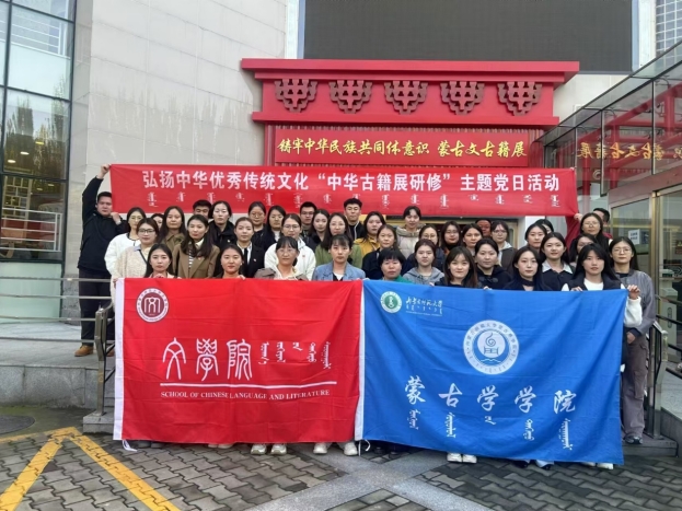 为深入贯彻落实党的二十届三中全会精神,有形有感有效铸牢中华民族共同体意识,10月31日,565net必赢客户端党委与蒙古学学院党委联合组织所属研究生党支部前往内蒙古图书馆,开展“弘扬中华优秀传统文化‘中华古籍展研修’主题党日活动”。