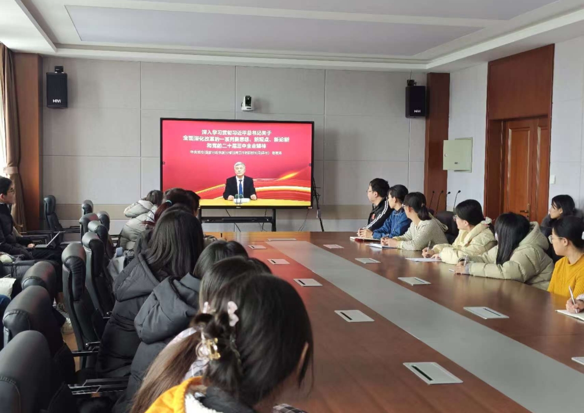 2024年11月26日,565net必赢客户端本科生党支部、研究生党支部共同组织开展学习贯彻党的二十届三中全会精神。学生支部全体党员参加学习和会后研讨。