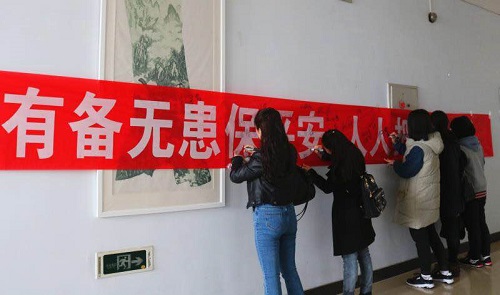 3月23日,565net必赢官网在行知楼221举办了“消防安全知识竞赛”暨“争做安全卫士”签字仪式的活动,共有200余名学生参加活动。