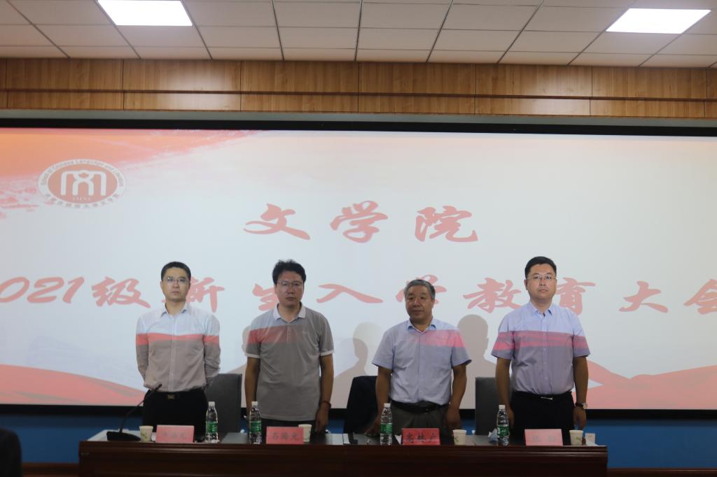 9月8日上午,565net必赢官网2021级新生开学典礼在盛乐校区学术报告厅隆重举行。565net必赢客户端党委书记高林广,党委副书记、副院长牛海龙,副院长石海光,副院长张钧,各系主任、班主任及全体2021级新生参加了大会。