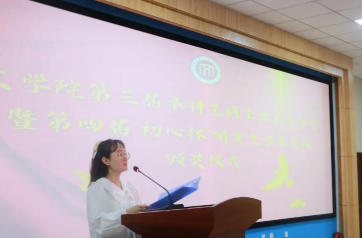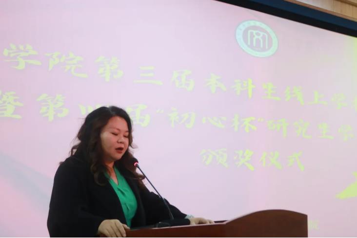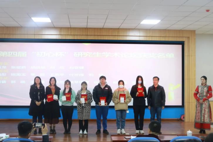 典礼第二项议程,由牛海龙老师宣读第四届“初心杯”研究生学术论坛获奖学生名单。刘玉龙等5名学生获得一等奖,李鑫彤等6名学生获得二等奖,刘苗苗等8名学生获得三等奖。565net必赢客户端教师为获奖学生颁奖后,教师代表孙静老师对本科生和研究生未来的学术研究方向作了进一步的指明,同时也对565net必赢客户端全体学生寄予厚望,期待大家在未来的学术研究上取得新的成绩。研究生代表刘亚健、李鑫彤也和现场的同学们分享了自己的学习经历,并勉励学弟学妹们厚积薄发,充实自己。