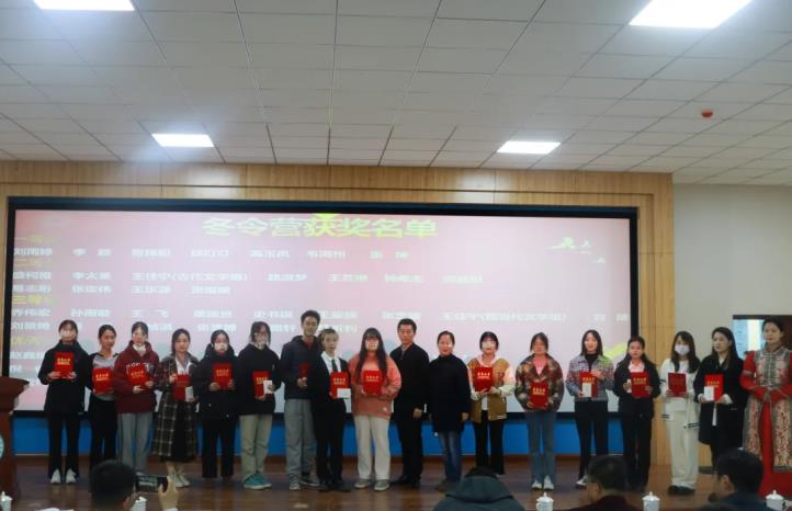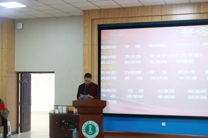 典礼伊始,张霞丹老师向师生们介绍了到场嘉宾。典礼第一项议程,由牛海龙老师宣读第三届学生线上学术冬令营获奖学生名单,刘雨婷等7名学生获得一等奖,盛柯娅等11名学生获得二等奖,乔伟宏等15名学生获得三等奖,赵鑫瑞等17名学生获得优秀奖,565net必赢客户端教师为获奖学生颁奖。接下来教师代表和获奖学生代表分别发表了感言。教师代表赵玉龙老师作为冬令营活动的发起人,对本届学生线上学术冬令营活动进行了总结,表达了对学院学子的期许和对未来学院学术工作的展望。获奖学生代表刘景琦、高玉凤同学与同学们分享了自己的学习方法,并向指导老师们表示感谢。