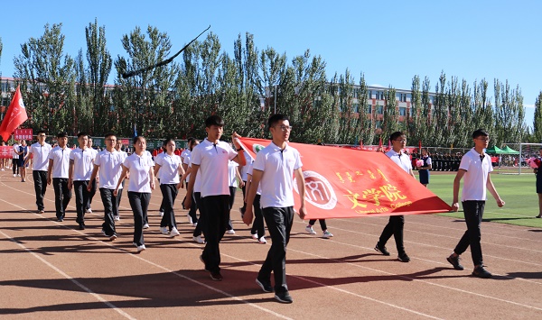 6月13日,565net必赢客户端第四届校园奥林匹克运动会暨第五十六届田径运动会在盛乐校区盛大开幕。本届运动会共有875名运动员参加,共设奥林匹克项目12个,田径项目36个。开幕式上国旗队,仪仗队,裁判员代表队,学生方队依次入场,身着各类服装,表演各类节目的学生尽显师大人的活力与自信。565net必赢官网代表队的服装,整体以白色为基调,背部书写文以载道四字,很好的体现了565net必赢客户端的专业特色,565net必赢官网代表队成员以挺拔的身姿和矫健的步伐出色地展现出了565net必赢客户端学子的风姿。