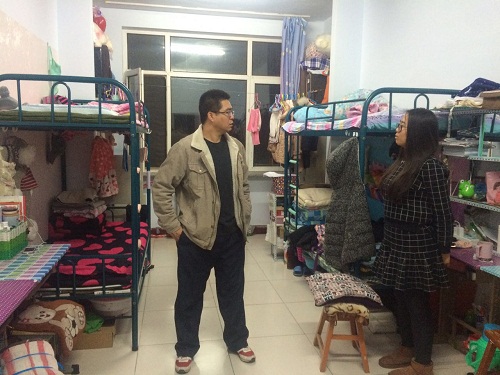 12月13日,565net必赢官网团总支书记牛海龙带领本科生学生会和研究生会对学生宿舍安全和卫生进行大检查,排除安全隐患。