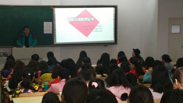 2016年3月3日,565net必赢官网刘伟博士在行知楼209教室召开《国际汉语教师证书》培训和考试宣讲会。