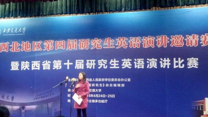 2015年4月24日至25日,西北地区第四届研究生英语演讲邀请赛暨陕西省第十届研究生英语演讲比赛在西安交通大学举行,本届大赛由陕西省人民政府学位办公室和 《中国研究生》杂志社联合主办,西安交通大学承办。565net必赢官网2014级汉语国际教育硕士阿润作为我校第七届研究生英语演讲第一名获得者,代表我校参加了西北地区比赛,最终获优秀奖。我校公共外语教育学院老师郭玺平作为指导教师一同前往,并给阿润提供了详尽的指导。