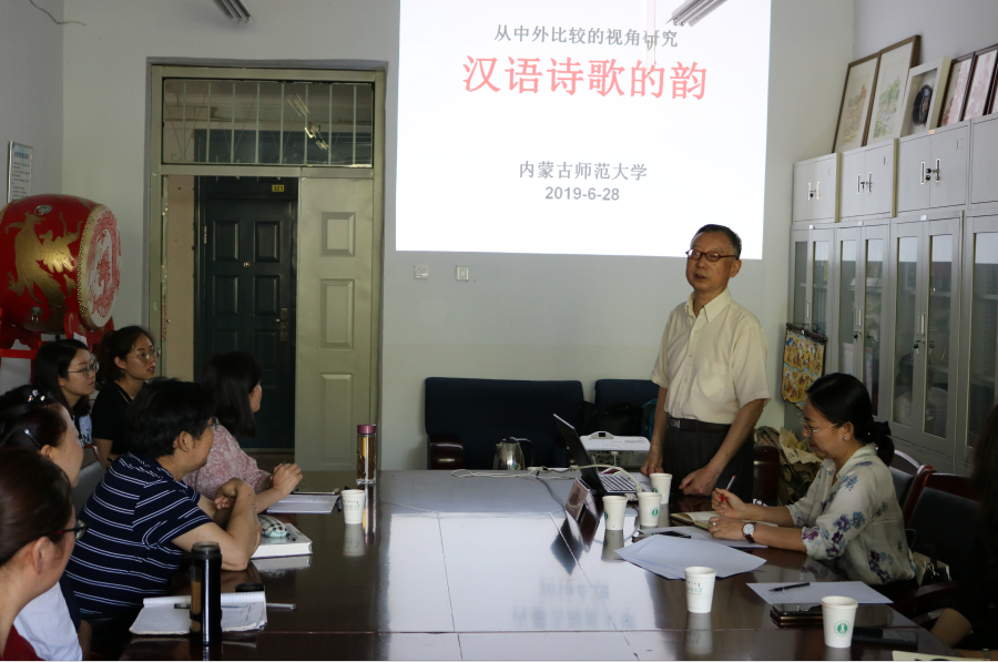 2019年6月28日,著名语言学家、音韵学家鲁国尧教授莅临565net必赢官网,围绕“汉语诗歌的韵”这一主题做了专场学术讲座。讲座从中外比较的视角深入细致地解析汉语诗歌的韵。讲座由闫艳院长主持,565net必赢官网中国古典文献学、汉语言文字学、语言学及应用语言学的师生聆听了此次讲座。
