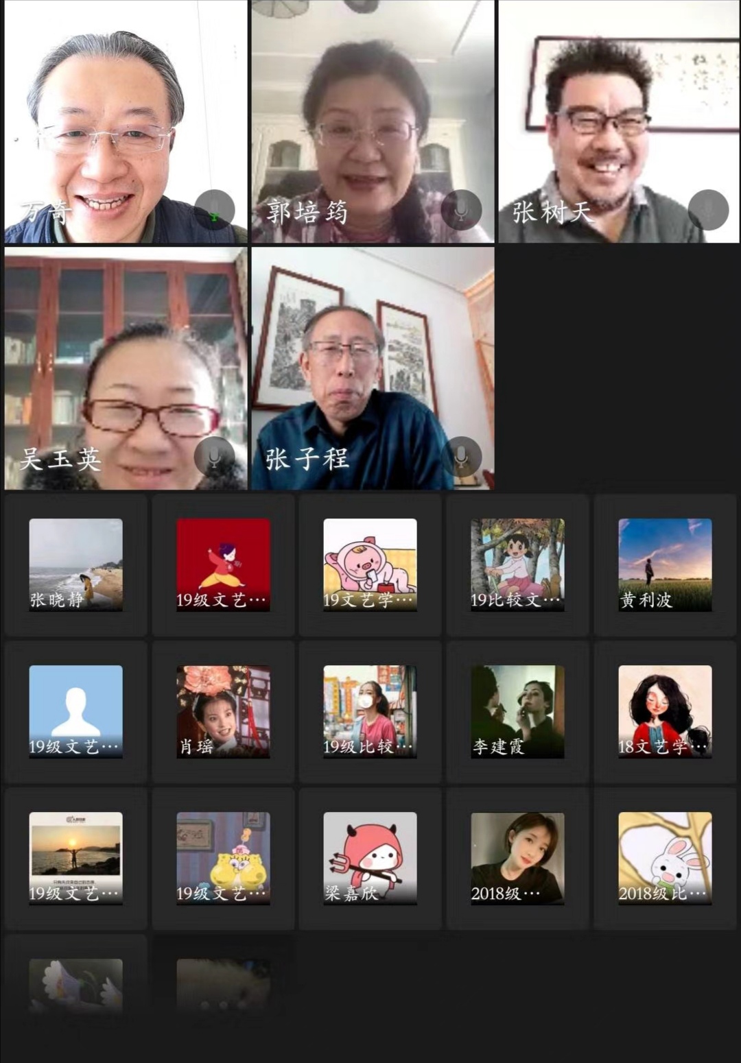 2020年4月25日上午,565net必赢官网2018级文艺学学术硕士毕业论文开题报告会在企业微信视频会议平台举行。文艺学导师万奇教授,张树天教授,郭培筠教授,张子程教授,吴玉英副教授及本专业18级,19级研究生参加了开题报告会。报告会由学位点主任万奇教授主持。2018级文艺学梁嘉欣、李建霞、苏漾、黄利波、张晓静、肖瑶、楠丁7位同学依次做了开题报告,分别介绍了其选题背景,选题研究价值,研究现状,研究思路方法和研究的具体内容创新点等。各位导师针对每位研究生的开题报告做了全方位的专业细致点评。这次毕业论文开题报告会成功举行是对2018级学生学习成果的检验,也是文艺学良好教学质量的体现。