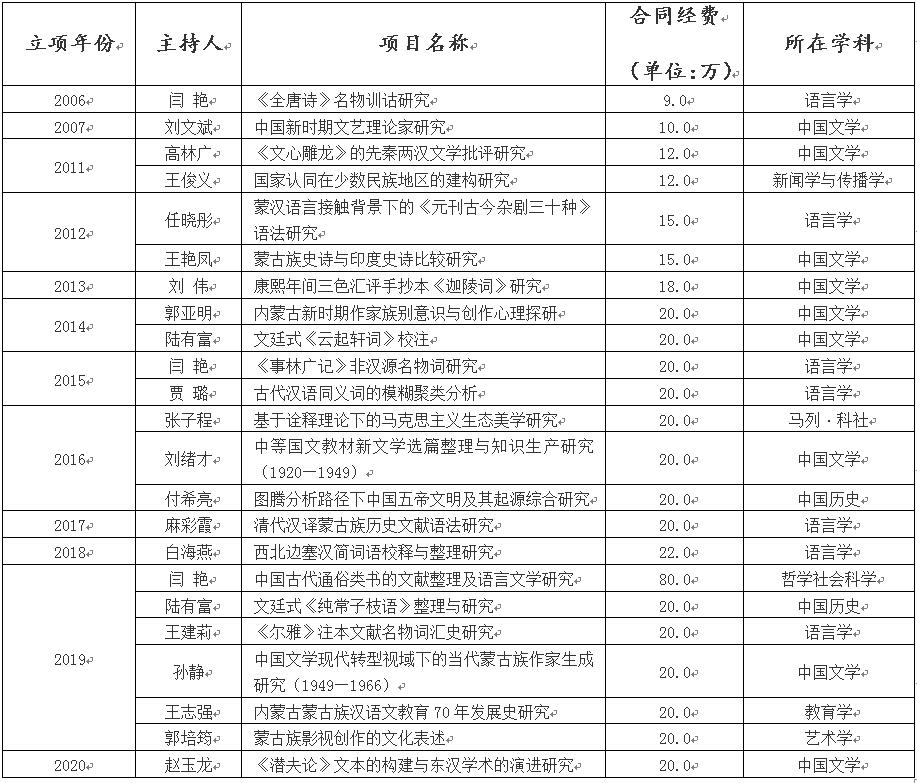 2006年以来565net必赢客户端获批国家社科基金项目一览表