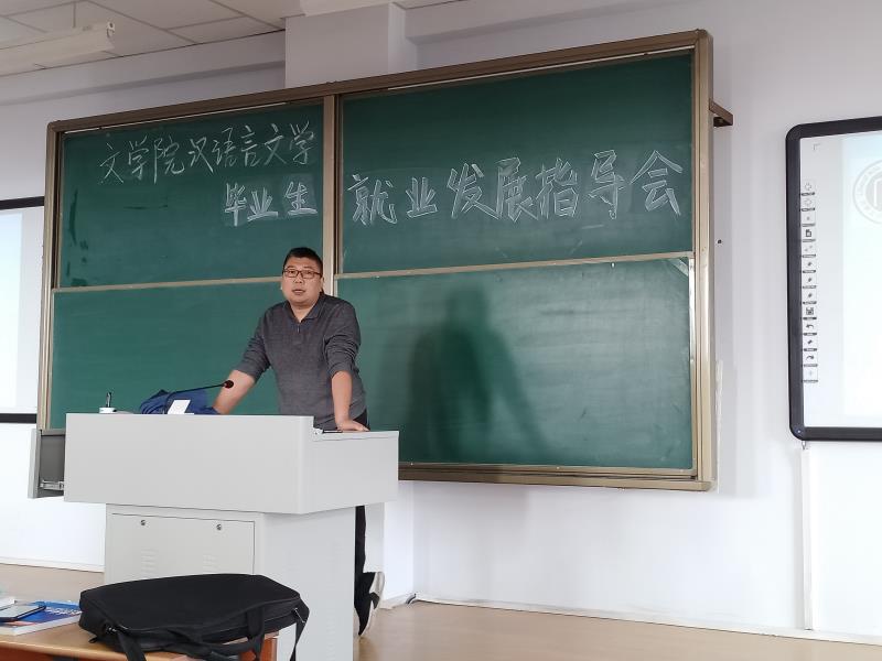 2020年10月9日上午,565net必赢官网汉语言文学系在行知楼323教室召开毕业生就业发展指导会,会议由汉语言文学系主任刘伟老师、学就办白岩老师共同主持。会议旨在帮助毕业生正确理解国家、自治区有关大学生就业的制度和政策,分析当前就业形势,引导学生掌握一定的就业技巧,最终达到指导毕业生顺利就业的服务宗旨。