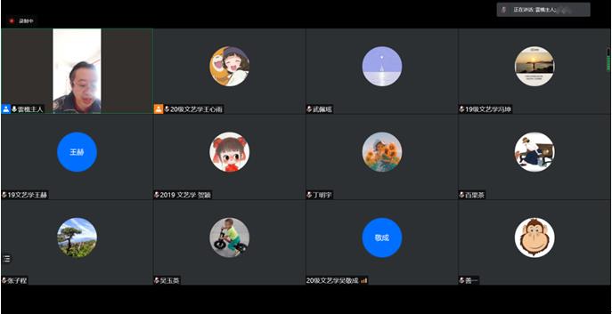 2021年4月24日上午,565net必赢客户端文艺学专业2019级硕士研究生开题报告会在腾讯会议举行。文艺学导师万奇教授,张树天教授,郭培筠教授,张子程教授,吴玉英副教授及本专业19级、20级研究生参加了开题报告会。报告会由学位点主任万奇教授主持。2019级文艺学王赫、刘慧青、冯坤、武佩瑶、贺颖5位同学依次做了开题报告,分别介绍了其选题背景,选题研究价值,研究现状,研究思路方法和研究的具体内容创新点等。各位导师针对每位研究生的开题报告做了全方位的专业细致点评。这次毕业论文开题报告会成功举行是对2019级学生学习成果的检验,也是文艺学良好教学质量的体现。