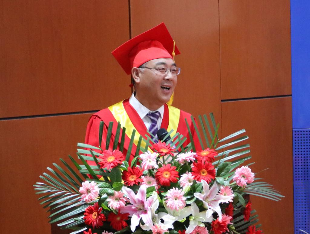 校党委副书记高云峰研究员发表了引人深思、催人奋进的致辞。高云峰书记在致辞中,围绕硕士研究生戴上硕士帽就不能贫乏、平凡和平庸展开,就毕业生今后如何才能不平凡和不平庸分享了自己的人生经验,为即将走向社会的毕业生上了生动一课。
