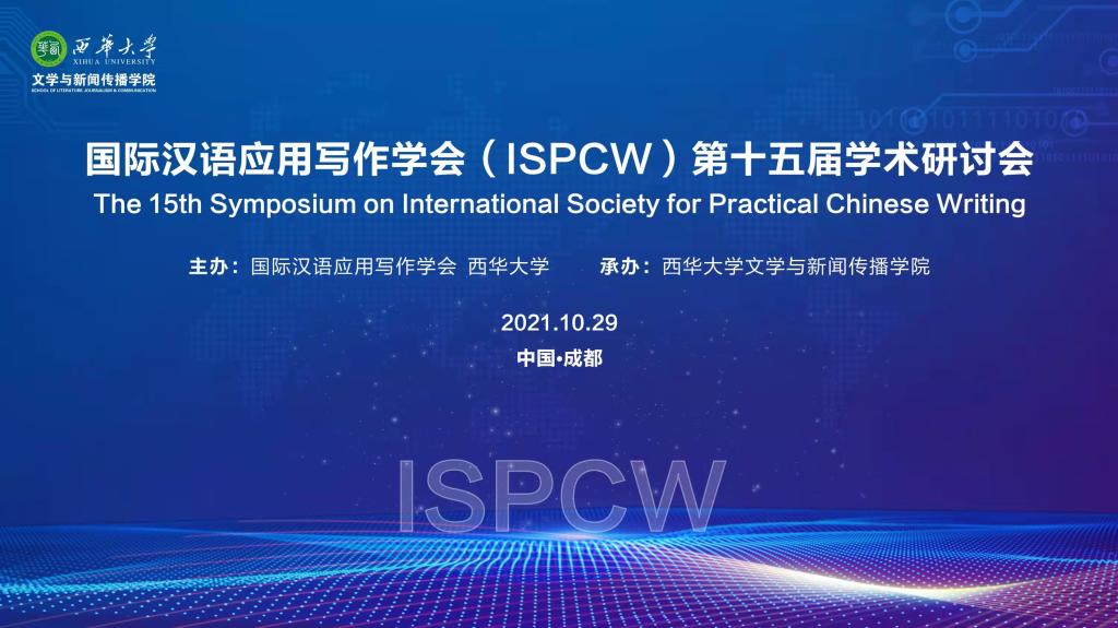 10月30日至31日,国际汉语应用写作学会第十五届学术研讨会在成都召开。本届研讨会由国际汉语应用写作学会主办、西华大学文学与新闻传播学院承办。来自内地、香港、澳门、新加坡等多地的学者参加了本届研讨会。因疫情故,本届研讨会采用线上与线下相结合的方式参会。565net必赢官网万奇教授是国际汉语应用写作学副会长,应邀以线上交流的方式参加了研讨会。