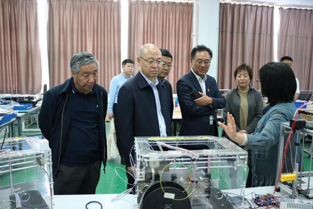 高云峰副书记一行首先前往鄂尔多斯应用技术学院考察交流,实地参观了该校智能制造实验实训中心、AOC实训室、CBT实训、航空电子仪表实训室等。鄂尔多斯应用技术学院党委副书记、院长李向东,党委副书记秦闻苹,党委委员、副院长金良及相关部门负责人陪同考察。考察结束后,进行了座谈交流,双方就学科建设、实习实训、师资队伍建设、人才培养、学生就业等进行了深入探讨。