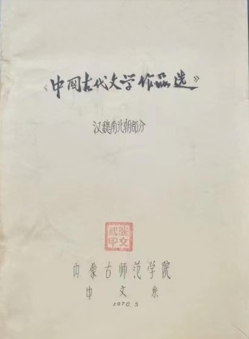 2.《中国古代文学作品选》(汉魏南北朝部分),內蒙古师院中文系编,1978年3月,油印本;