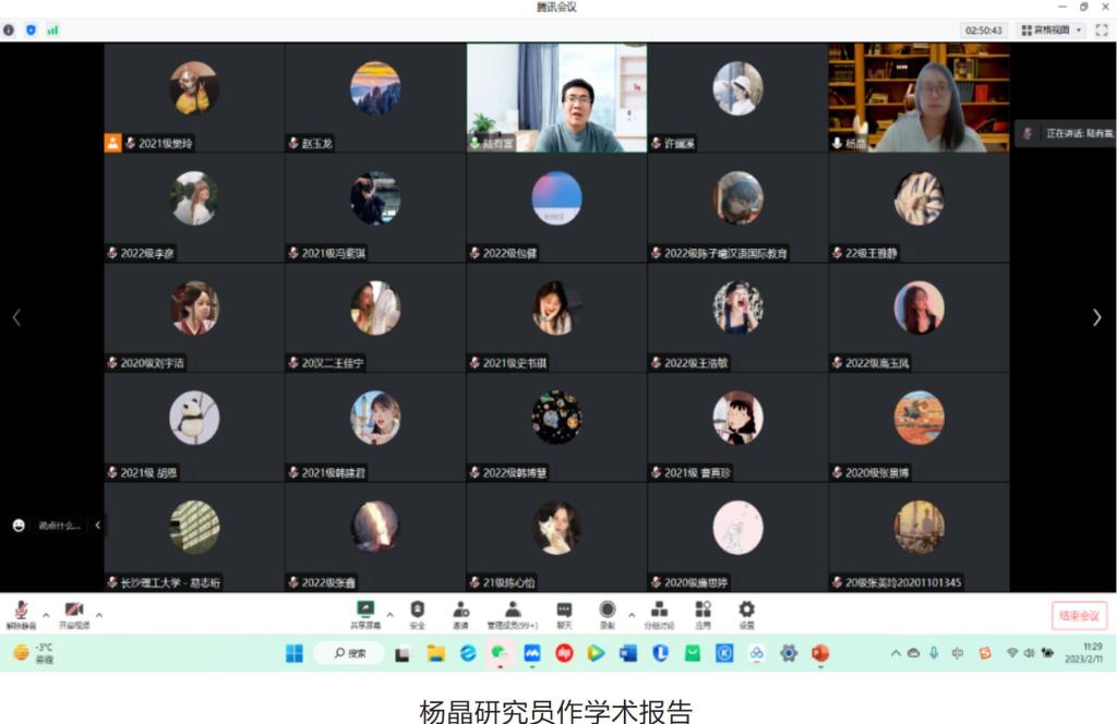 2023年2月12日,为期两天的565net必赢客户端学生线上学术冬令营活动圆满落下帷幕。本次冬令营面向全国高校在读中文专业学生招生,经过严格选拔,共招收学员130人,其中,除本院各年级各专业学生之外,还有来自西安外国语大学、中央民族大学、曲阜师范大学、陕西理工大学、安徽大学、长沙理工大学、呼伦贝尔学院、赤峰学院等高校的学生参加。活动形式主要包括知名专家学术讲座、校友报告、学术论文(读书报告)汇报与点评、营员研讨等内容。