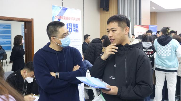 招聘会现场,用人单位负责人向前来应聘学生介绍了招聘岗位,并详细解答各类专业问题。学生针对自己的需求与优势,选定心仪岗位,递交个人简历,等待后期面试,招聘过程井然有序。