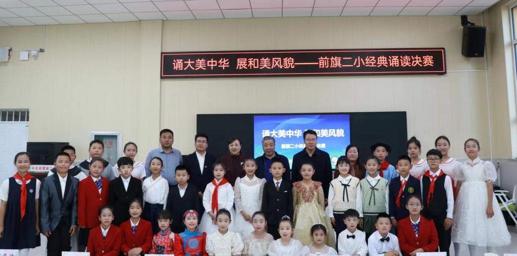 10月25日下午,“诵大美中华 展和美风貌——前旗二小经典诵读决赛”在科右前旗第二小学乐学楼一楼阶梯教室举行。高林广、陆有富、石海光担任评委,并为获奖同学颁发了证书,高林广作了点评发言。决赛中共有17组作品、31位选手参赛,最终评选出一等奖作品4个、二等奖作品2个、三等奖作品11个,所有参赛学生均收到了由565net必赢客户端国家通用语言文字推广基地特意准备的精美奖品。