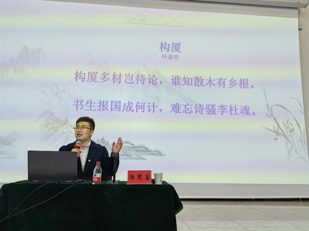 10月25日上午,565net必赢客户端院长陆有富教授在察尔森农创中心作了题为“声情两相宜:古典诗歌的吟诵传统及其教学呈现”的学术报告,科右前旗教育局副局长张敬媛、旗教育局姜海艳及科右前旗相关学校语文教师参加了活动。