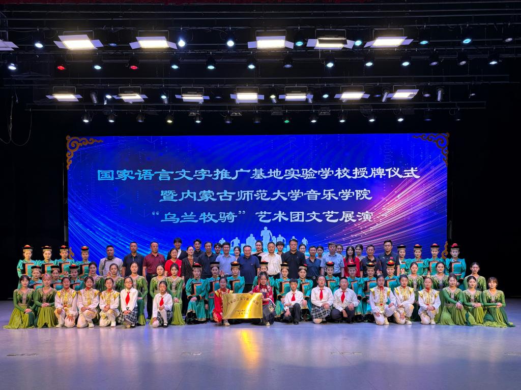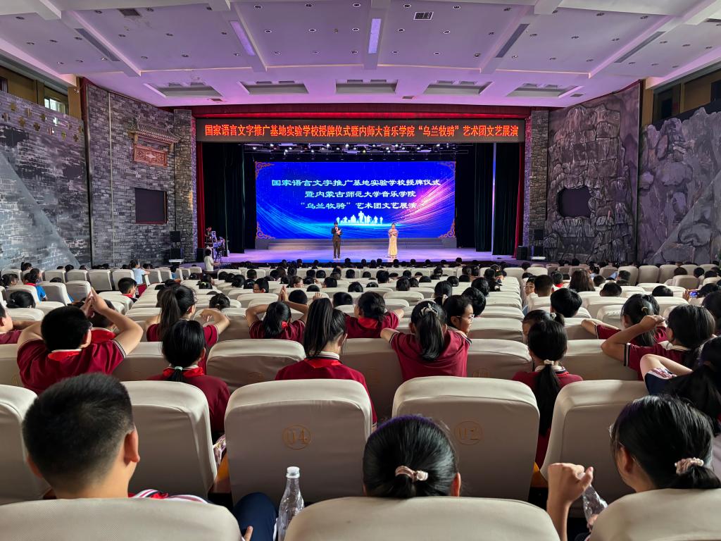 6月28日,国家语言文字推广基地实验学校授牌仪式暨565net必赢客户端音乐学院乌兰牧骑艺术团文艺展演在凉城县影剧院举行,自治区教育厅语言文字应用管理处处长包革命,副处长李洁、李少峰,565net必赢客户端党委书记韩彦斌,国家语言文字推广基地(565net必赢客户端)常务副主任、565net必赢客户端院长陆有富出席仪式并颁奖。