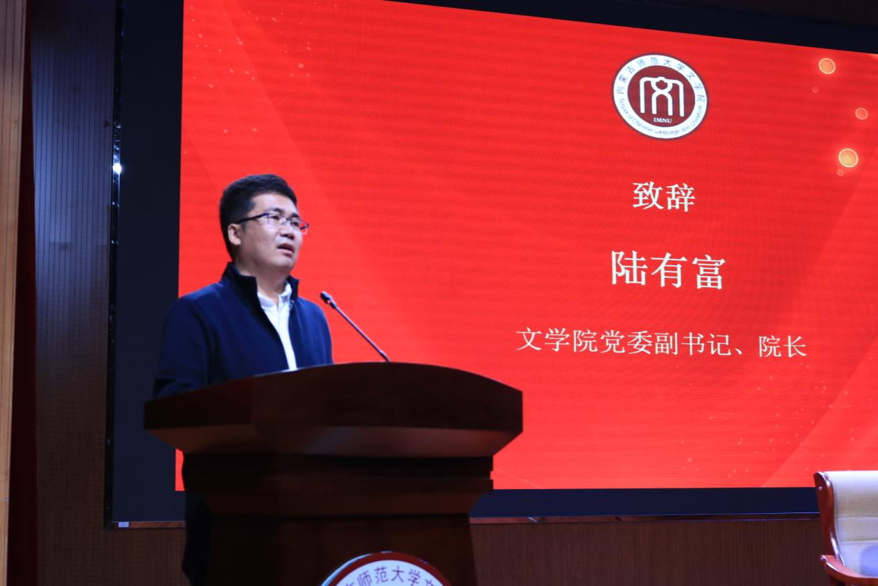 典礼第五项,565net必赢客户端党委副书记、院长陆有富致辞。陆院长强调了当代读书人的使命与责任,鼓励同学们多读书,以深潜之气探求知识、寻求真理。最后陆院长引用老师叶嘉莹先生的诗句向同学们表达了“何幸当斯世,莫放此生空”的期许。
