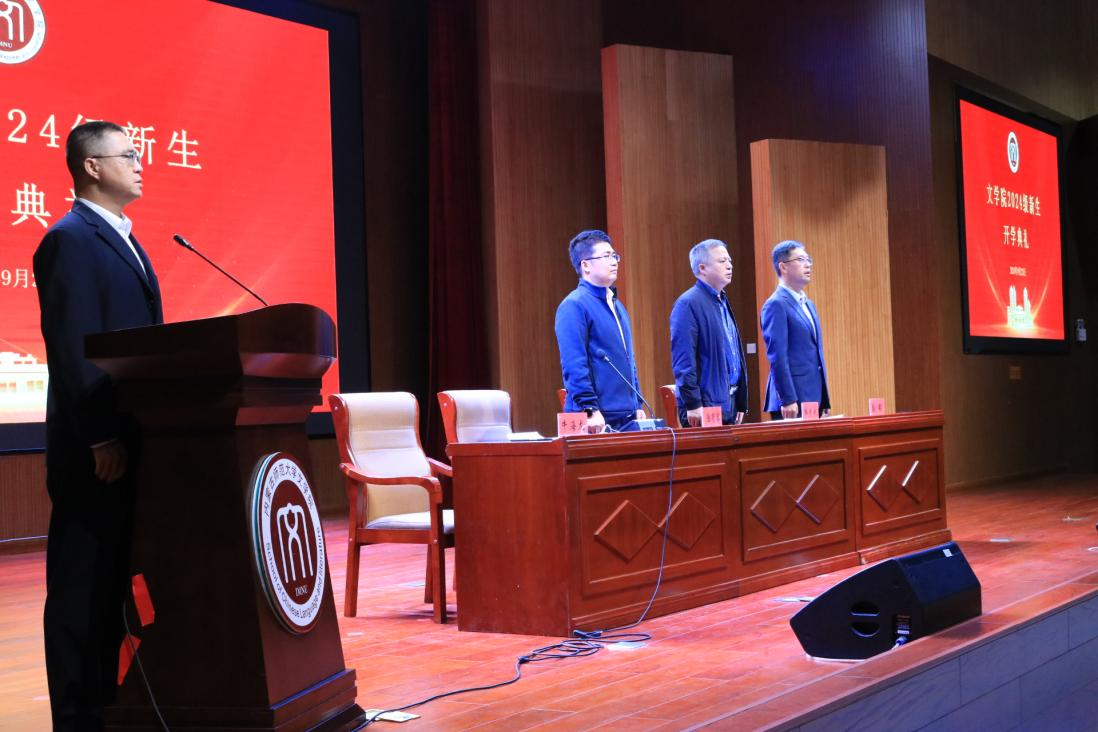 2024年9月23日,565net必赢客户端2024级新生开学典礼于盛乐校区图书馆二楼报告厅隆重举行。565net必赢客户端党委书记韩彦斌,党委副书记、院长陆有富,党委副书记、副院长牛海龙,副院长张钧,2024级各班班主任,学院教务办、学就办负责人及2024级全体新生参加了此次开学典礼。典礼由牛海龙副书记主持。