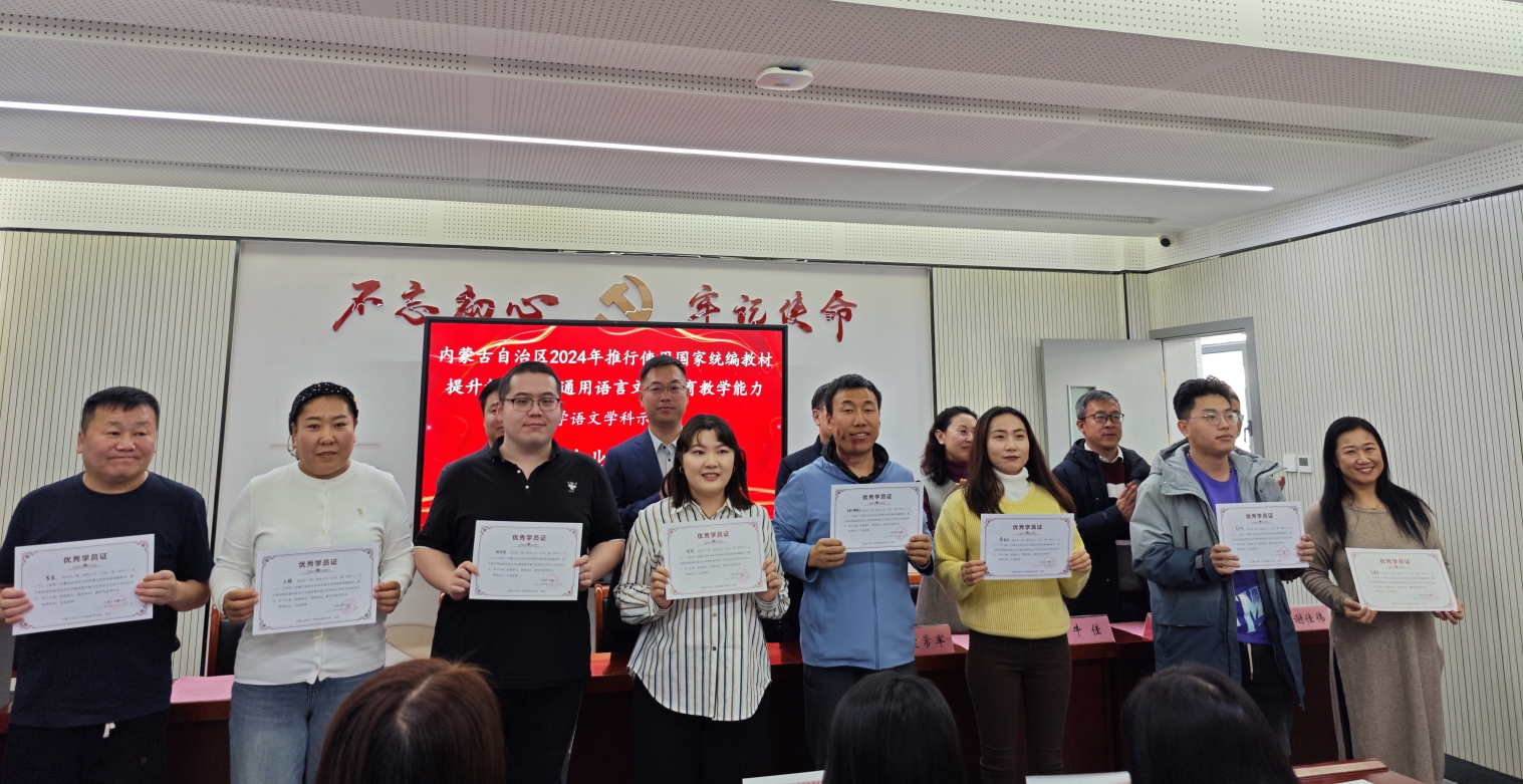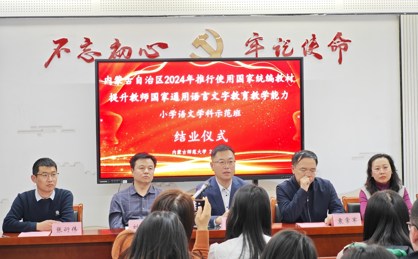 2024年12月20日,565net必赢官网和继续教育学院共同承担的内蒙古自治区2024年推行使用国家统编教材提升教师国家通用语言文字教育教学能力小学语文学科示范班培训工作圆满完成,参训的48位学员全部顺利结业,当日举办了隆重的示范班结业仪式。565net必赢官网副院长张钧、汉语言文学系主任李瑞春、青年教师谢佳伟出席示范班结业仪式。