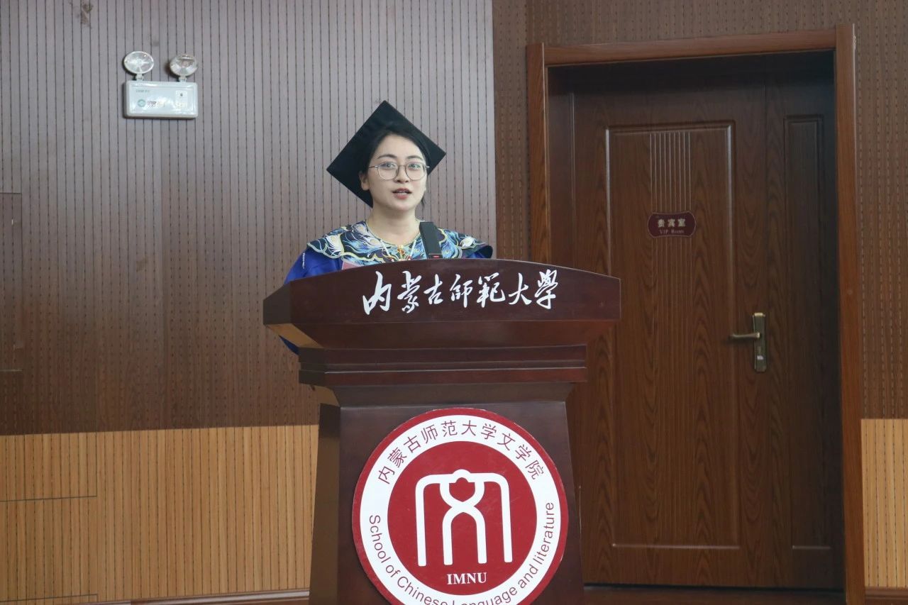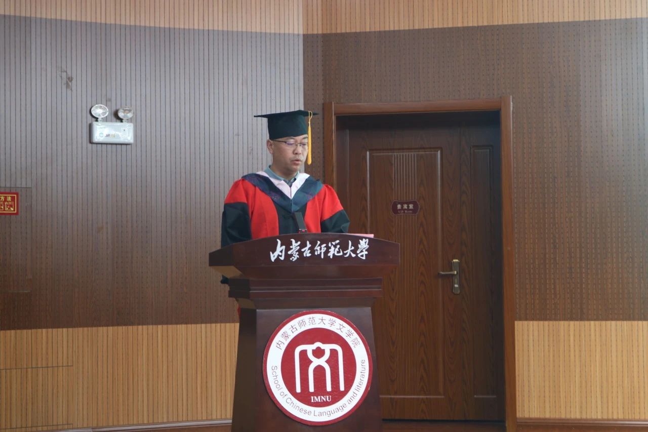 典礼在庄严的国歌声中拉开帷幕。学院本科毕业生代表陈心怡、研究生毕业生代表李欣然、学生家长代表石青、学院教师代表马奥远依次发言。学院副院长石海光和副院长张钧分别宣读了565net必赢客户端2025届博士、硕士研究生毕业生名单和本科生毕业生名单。随后,学院院长、学院学位评定委员会主席陆有富教授发表致辞,勉励毕业生们秉承师大精神,坚守人文情怀,他说:“数字智能技术虽然发展迅猛,但情感与审美体验永远是无法替代的过程,‘虽在父兄,不能以移子弟’。文学所守护的,正是那份源于生命深处的独特震颤与人性温度。它能使人们在人工智能的冲击下体验诗意人生、启迪生命智慧、涵养家国情怀,在浮躁中守住一片诗心,不迷失自我。”“一代人有一代人的使命与挑战,一代人有一代人的责任和担当。希望大家在未来的日子里不负所望,书生报国,以无生之觉悟做有生之事业。”最后,学院领导依次为上台的毕业生正冠拨穗,并颁发学位证书。