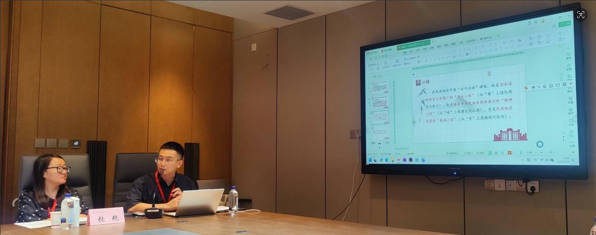 谢佳伟博士就教学经验与反思,作了题为《“古代汉语”课程于助力国家语言文字推广、铸牢中华民族共同体意识的意义》的报告。