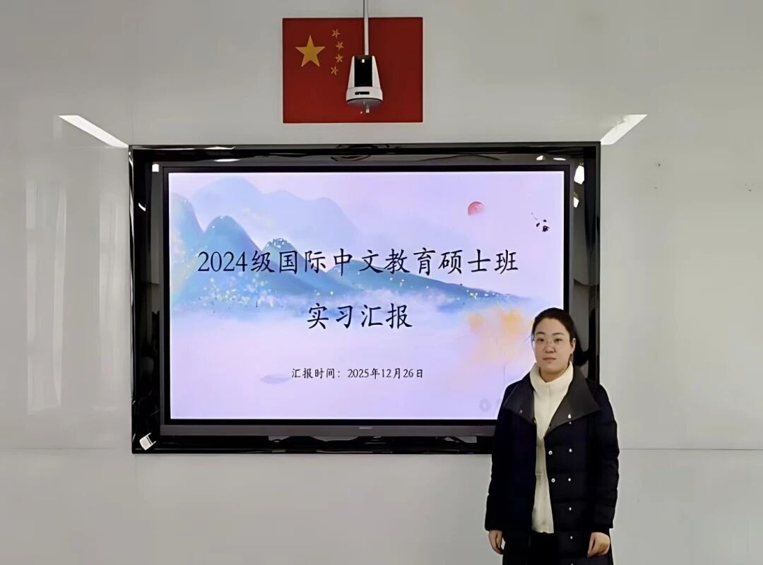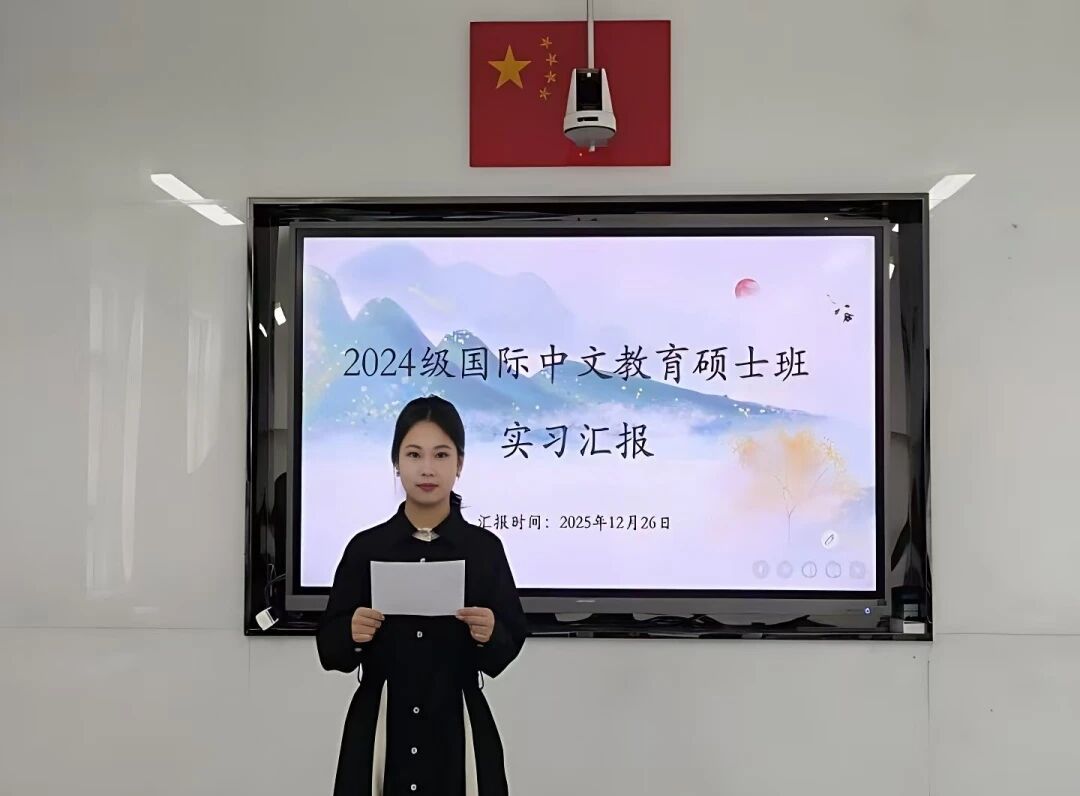 2025年12月26日上午,2024级国际中文教育硕士班实习报告会在田家炳教学楼432教室顺利举行。会议旨在为学生搭建一个分享实习经验与交流教学成果的平台,促进本专业教学实践与理论学习深度融合。国际交流学院对外汉语教研室徐剑老师、国际中文教育硕士点刘婕老师、阿茹恒老师,以及2024级和2025级国际中文教育专业全体硕士研究生共同参与此次会议。
