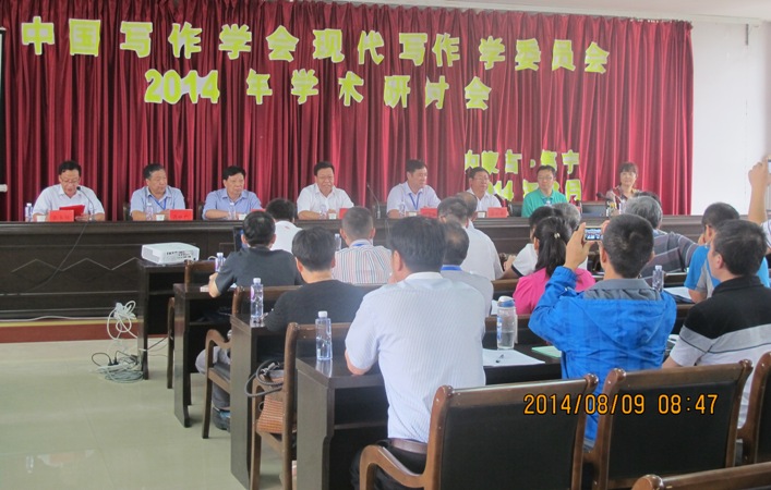 2014年8月9—10日,中国写作学会现代写作学委员会2014年学术研讨会在乌兰察布市召开。本次会议由中国写作学会现代写作学委员会主办,内蒙古写作学会和集宁师范学院承办,565net必赢客户端协办。来自南京大学、福建师大、广州大学、大连大学、河海大学等国内30余所院校的40余位专家学者出席了本次会议。中国著名作家、内蒙古作家协会副主席、原乌盟作协主席、文联主席、蒙古史专家满都麦先生莅临大会现场。会议的中心议题是“‘全民写作’时代的写作教学”,与会代表就网络背景下的写作学科定位、写作经历积累、写作技能训练等问题进行了热烈而深入的讨论。