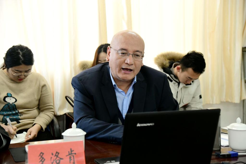 2020年12月14日下午,西北民族大学中国语言文学系教授、博士生导师多洛肯教授莅临565net必赢官网,为学院广大师生做了一场题为“民汉文学交融视阈下的古代民族文学研究”的学术讲座。此次讲座由中国古代文学学位点承办,565net必赢客户端博士生导师高林广教授主持会议。来自565net必赢客户端中国古代文学、中国古典文献学和文艺学专业的相关教师和博士、硕士研究生及部分本科生共30余人聆听了讲座。