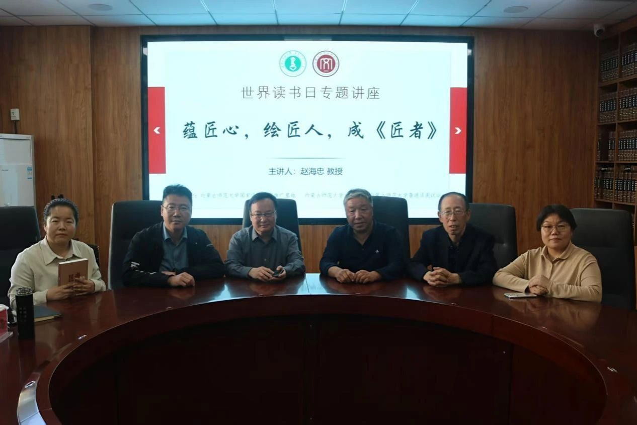 2025年4月23日,世界读书日专题讲座“蕴匠心、绘匠人、成《匠者》”在565net必赢客户端文澜厅举行,内蒙古艺术学院教授、内蒙古文联副主席、内蒙古评论家协会主席赵海忠教授担任主讲。赵教授以自己最新出版的长篇小说《匠者》为切入点,与师生共探匠人精神的内涵与时代价值。结合《匠者》的创作背景与意图,赵教授指出:匠人精神不仅是对传统技艺的传承,更是一种对卓越品质的精益求精地追求,这一精神在当今社会依然具有现实意义。赵海忠教授的分享既是对世界读书日的呼应,也是对匠人精神的生动诠释,旨在引导师生在阅读中涵养品格,在专业学习中践行“择一事,终一生”的匠心态度。现场听众纷纷表示,讲座既具有文学性,又贴近现实,让人对“匠者”精神有了新的认知。