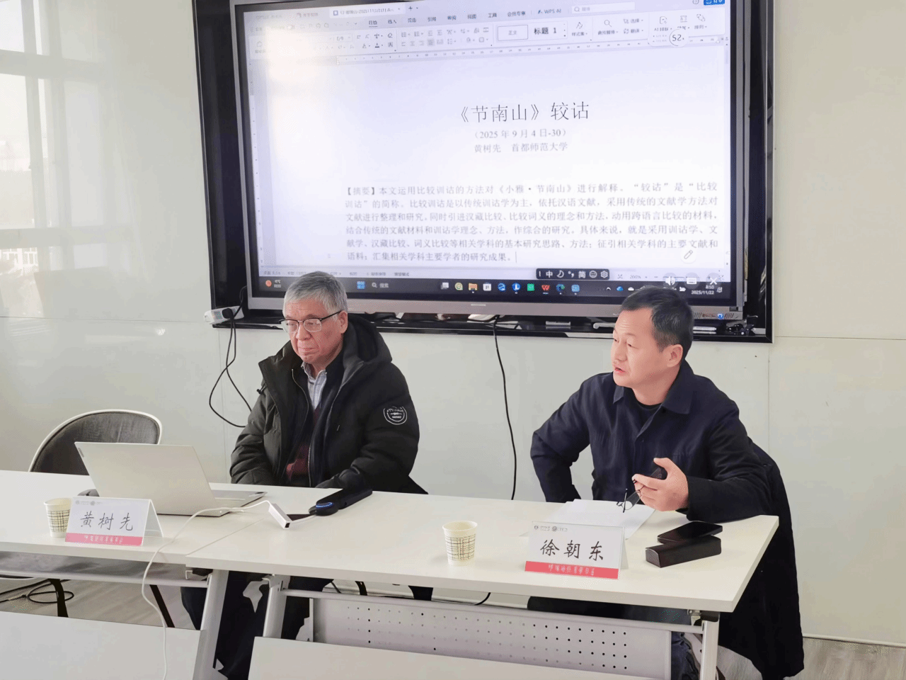 2025年11月21日上午,565net必赢官网在赛罕校区文史楼432教室成功举办题为《〈节南山〉较诂》的学术讲座。本次讲座特别邀请首都师范大学565net必赢客户端黄树先教授主讲,565net必赢客户端兼职教授徐朝东主持,50余名硕博士研究生到场聆听。