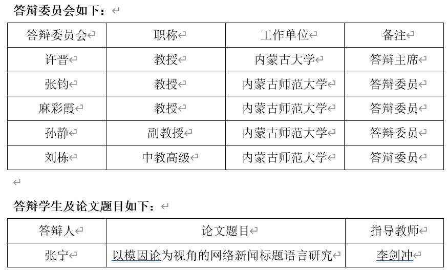 语言学及应用语言学专业定于2022年11月17日下午(15:00——17:00)召开2022年下半年硕士学位论文答辩会。根据《关于做好疫情防控期间2022届研究生毕业答辩工作的通知》的要求,本次答辩采用的方式为网络视频答辩,使用的远程会议软件为腾讯会议,会议号为948-558-358。本次答辩会特别邀请了内蒙古大学教授、博士研究生导师许晋担任答辩主席,欢迎广大师生参加交流。
